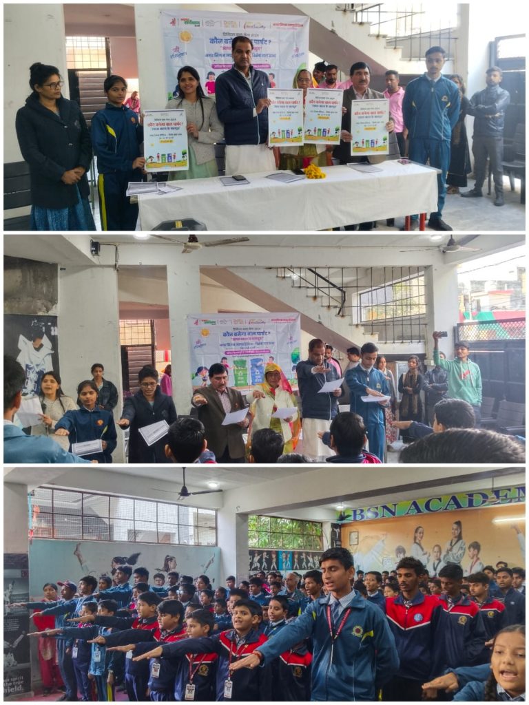 जयपुर, 10 दिसंबर 2024 – जयपुर नगर निगम हेरिटेज के वार्ड नंबर 53 गुर्जर की थड़ी में स्थित भवानी शिक्षा निकेतन विद्यालय में डिजिटल बाल मेला के द्वारा “कौन बनेगा बाल पर्षद” कार्यक्रम का आयोजन किया। इस कार्यक्रम में सभी बच्चों ने बढ़-चढ़कर भाग लिया और जयपुर नगर निगम और डिजिटल बाल मेला की टीम के साथ मिलकर वहाँ मौजूद सभी बच्चों ने स्वच्छ भारत रखने की शपथ भी ली।