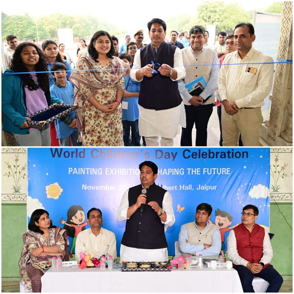 डिजिटल बाल मेला और यूनिसेफ के द्वारा विश्व बाल दिवस के अवसर पर पेंटिंग प्रदर्शनी का आयोजन किया गया. इसका शुभारम्भ मुख्य अतिथि एवं राजस्थान कैबिनेट मंत्री श्री अविनाश गहलोत ने किया।