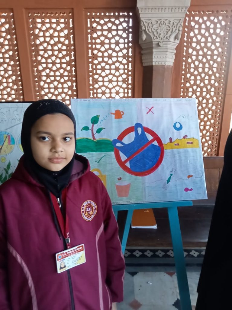 जयपुर, 26 जनवरी 2025 – एस.के. पब्लिक स्कूल, वार्ड 30 की कक्षा 6 की 11 वर्षीय छात्रा वली खानम ने अपनी पेंटिंग के माध्यम से स्वच्छ पर्यावरण और प्लास्टिक मुक्त समाज का संदेश दिया। उनकी इस प्रेरणादायक कृति को डिजिटल बाल मेला (फ्यूचर सोसाइटी) और जयपुर हेरिटेज नगर निगम के संयुक्त प्रयास से अल्बर्ट हॉल म्यूजियम में 26 जनवरी को आयोजित चित्रकला प्रदर्शनी में प्रदर्शित किया गया।