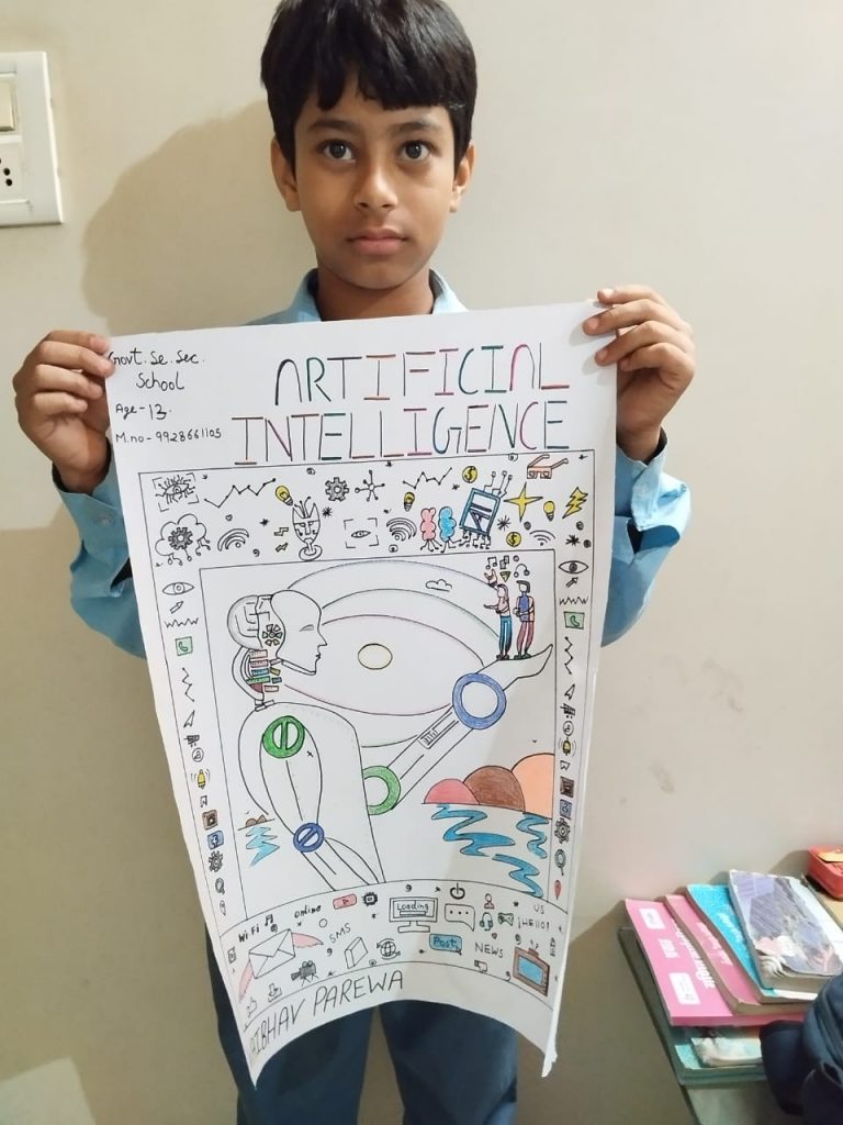 20 नवम्बर , अंतर्राष्ट्रीय बाल दिवस पर ” भविष्य का भारत कैसा हो” होने वाली पेंटिंग प्रदर्शनी के लिए वैभव ने भेजी अपनी पेंटिंग।
