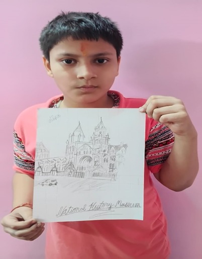 Vivek Soni student Sanskrit Children’s Academy School , has made a beautiful painting of the National History Museum .