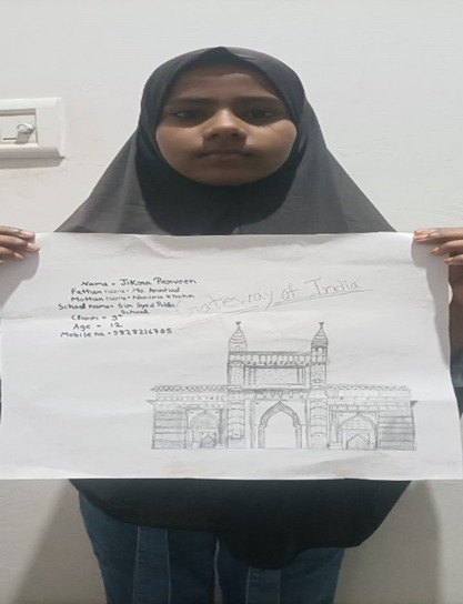 जयपुर , राजस्थान के सर सईद स्कूल की , जिकरा परवीन, ने गेटवे ऑफ इंडिया , पर आधारित एक सुंदर पेंटिंग तैयार की है।