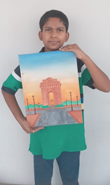 Moitreya  Datta  student MPS Jawahar Nagar School , has made a beautiful painting of the INDIA GATE.