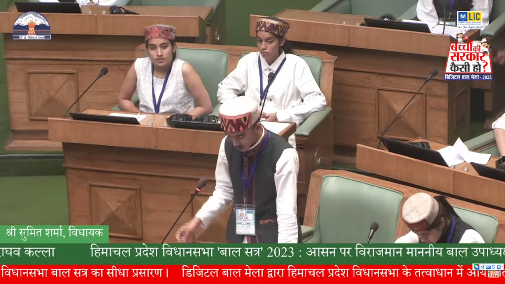 An important suggestion given to the government under Rule 324 as the MLA of the opposition  Ansh Gandhi  Jaipur.  On June 12, the state witnessed a historic Children’s Session presided over by the Speaker of the Himachal Pradesh Legislative Assembly.  For this special session, 68 children were selected from across the country, the process of
