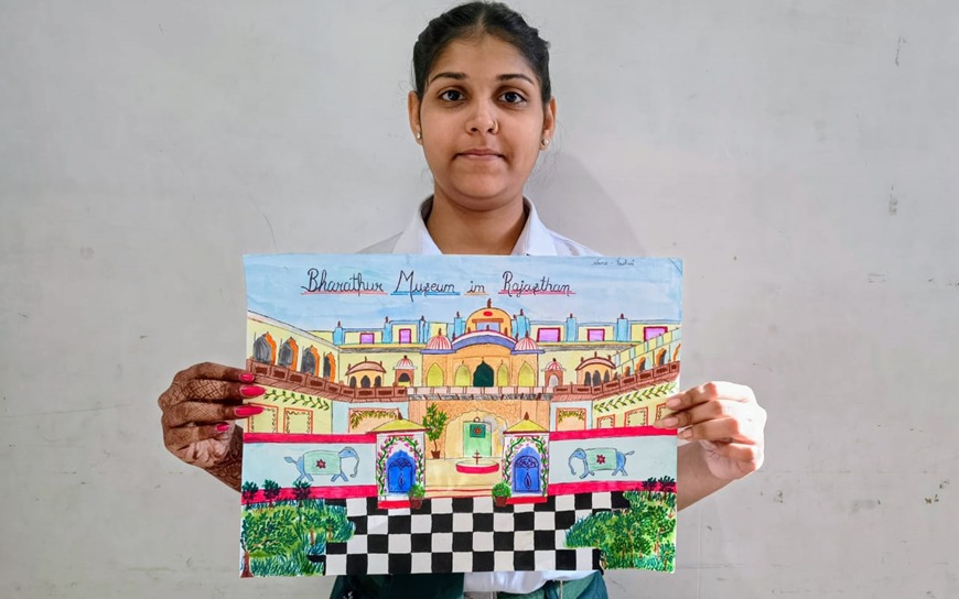 जयपुर, राजस्थान के शांति एशियाटिक स्कूल की आराध्य अग्रवाल, 14 वर्ष, ने नेपियर संग्रहालयपर आधारित एक सुंदर पेंटिंग तैयार की है।