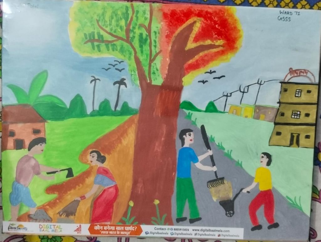 सुजिता पटेल की पेंटिंग: आधुनिकता बनाम पर्यावरण और संस्कृति गवर्नमेंट सीनियर सेकेंडरी स्कूल, महाराजा छोटी चौपड़, वार्ड 71 की कक्षा 11 की छात्रा सुजिता पटेल ने अपनी पेंटिंग में शहरीकरण और ग्रामीण भारत के बीच संतुलन को बेहद रचनात्मक तरीके से प्रस्तुत किया है। यह चित्र एक महत्वपूर्ण सवाल उठाता है – क्या आधुनिक […]