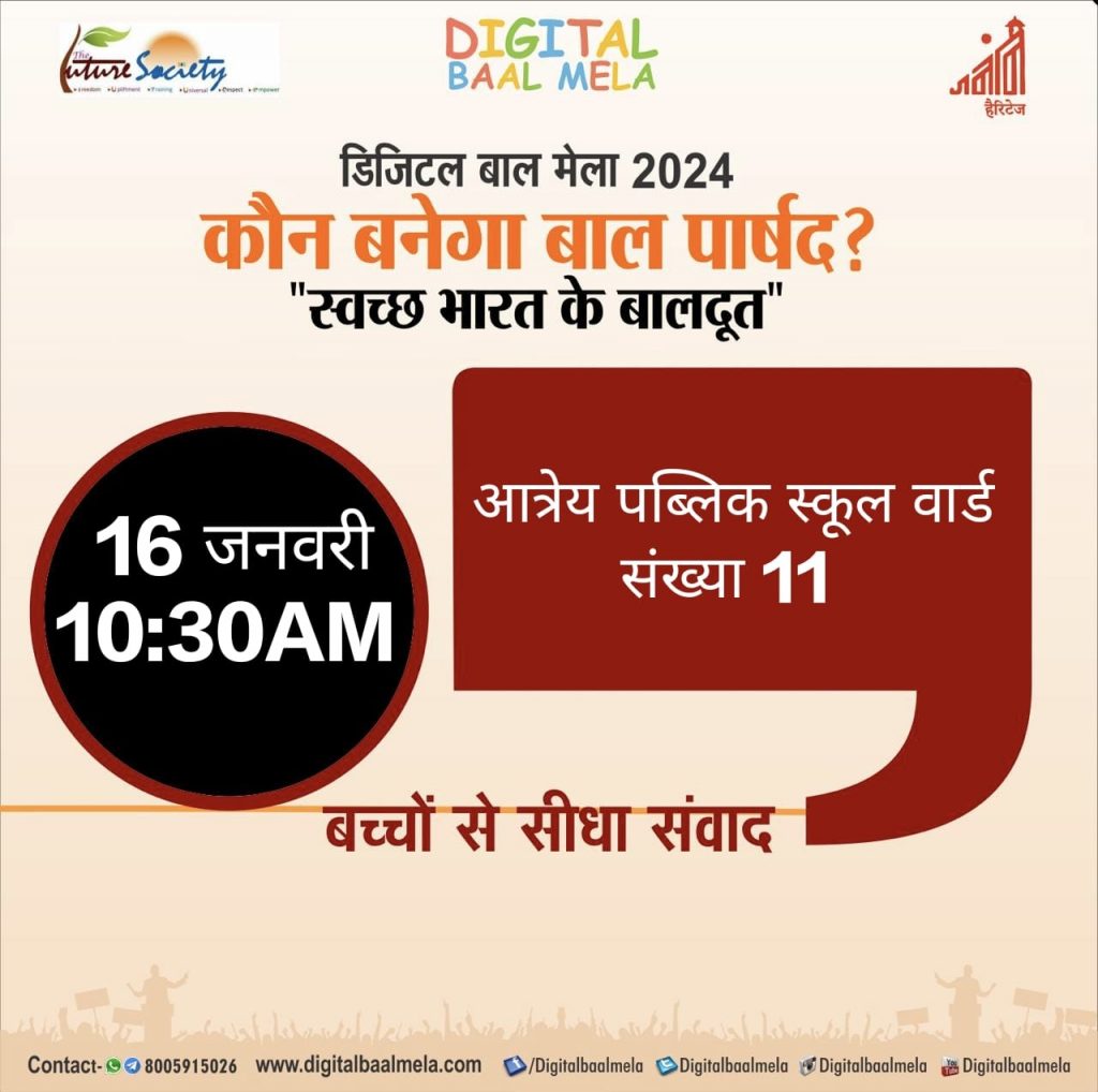 ‘कौन बनेगा बाल पार्षद’ कार्यक्रम में साक्षी और समर्थं ने जीता सम्मान। 15 जनवरी 2025: ‘कौन बनेगा बाल पार्षद’ कार्यक्रम के तहत आज श्री जरोडा देवी रेवोचंद गुरनानी सरकारी सिंधी सीनियर सेकेंडरी स्कूल, फतेहटीबा वार्ड 94 में डिजिटल बाल मेला और जयपुर नगर निगम हेरिटेज के सहयोग से एक प्रेरणादायक सत्र आयोजित किया गया। बच्चों […]