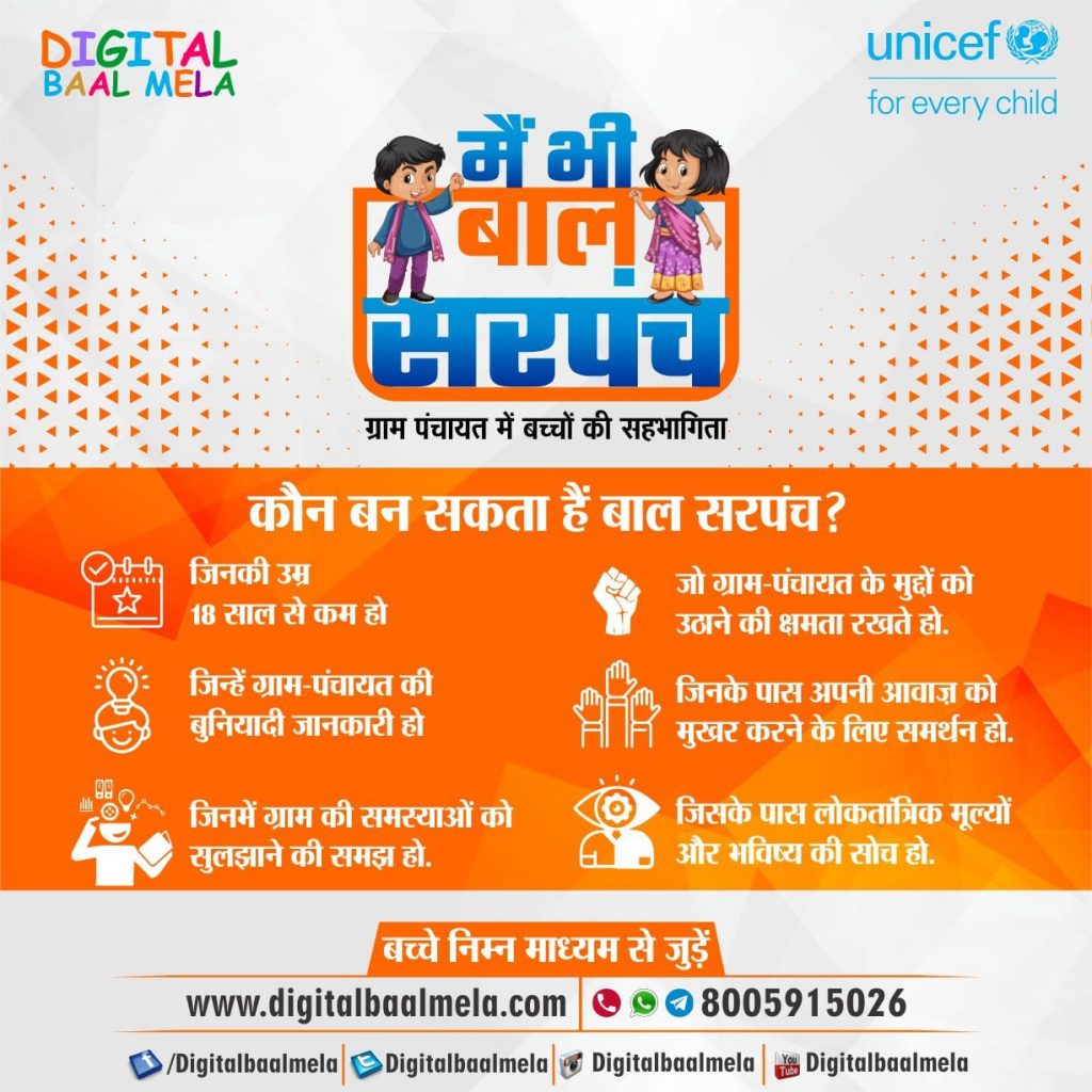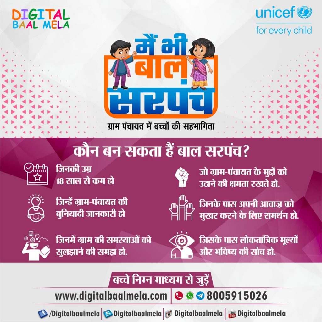 Priya Sharma| Jaipur| Who can become Baal Sarpanch? In the “Main Bhi Baal Sarpanch” campaign launched by UNICEF and Digital Baal Mela- Those children, who can raise the issues of their village-panchayat. Those children, who have basic knowledge of their village panchayat. Those children have the support of their child peers to make their voices […]