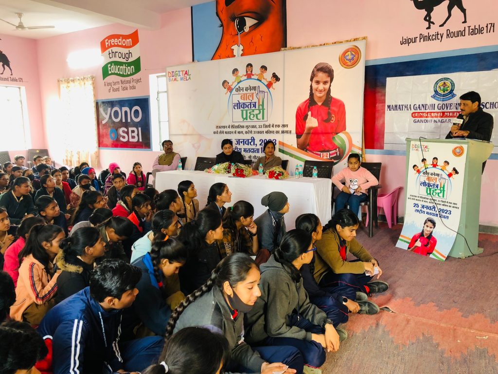 जयपुर। डिजिटल बाल मेला और राजस्थान शिक्षा विभाग द्वारा शुरू किये गए “कौन बनेगा लोकतंत्र प्रहरी” अभियान में –