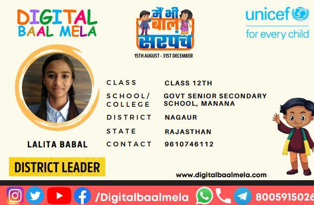 If your child also wants to participate in the unique campaign “Main Bhi Baal Sarpanch” of Digital Baal Mela, register on Digital Baal Mela’s website www.digitalbaalmela.com or register on this number 8005915026 via WhatsApp/Telegram. For details, follow the social media handles of Digital Baal Mela….