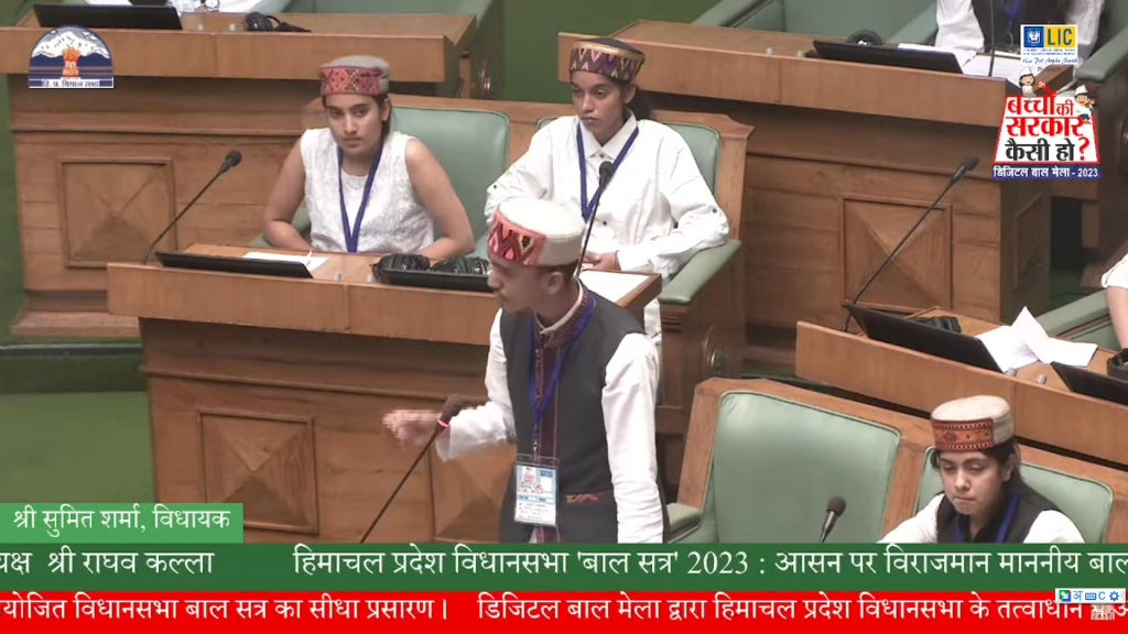 शिमला. 12 जून को हिमाचल प्रदेश विधानसभा स्पीकर की अध्यक्षता में राज्य ऐतिहासिक बाल सत्र का साक्षी बना. इस विशेष सत्र के लिए देश भर से 68 बच्चों का चयन किया गया था, जिसकी प्रक्रिया कुल तीन माह चली थी. “बाल प्रतिनिधि” बाल मुद्दों पर अपनी आवाज़ शिमला स्थित विधानसभा भवन में मुखर करते नज़र आए. खील के राजकीय उच्च माध्यमिक विद्यालय के सुमित शर्मा का चयन भी इस सत्र के लिए किया गया था. जिसमें वह विपक्ष के विधायक की भूमिका निभाते हुए नज़र आए.